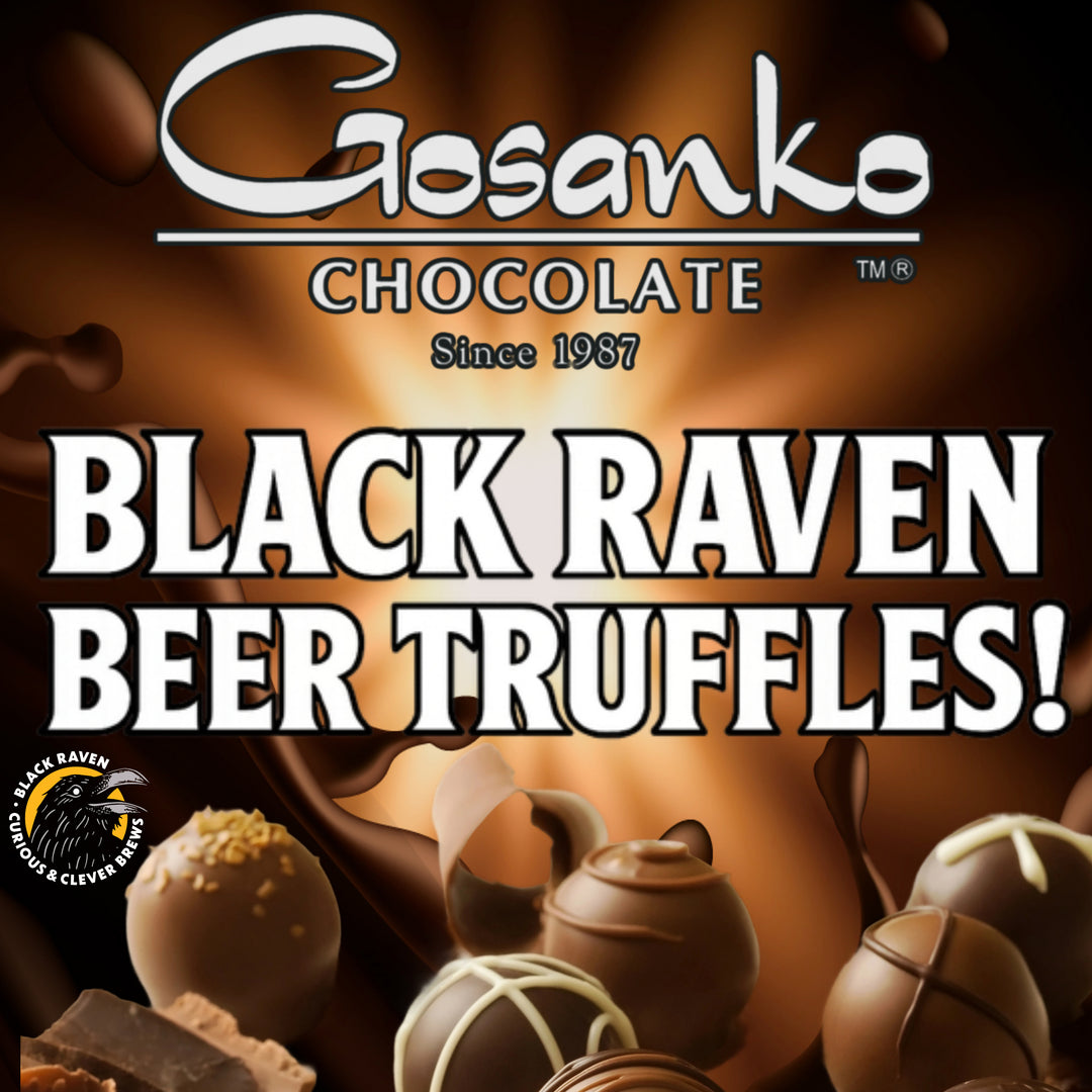 Introducing Black Raven Beer Truffles – a bold collaboration with Gosanko Chocolate! These rich, handcrafted truffles are infused with the unique flavors of our signature beers, creating a smooth, chocolatey bite with a craft beer twist. Curious, clever, and seriously delicious – just like us.